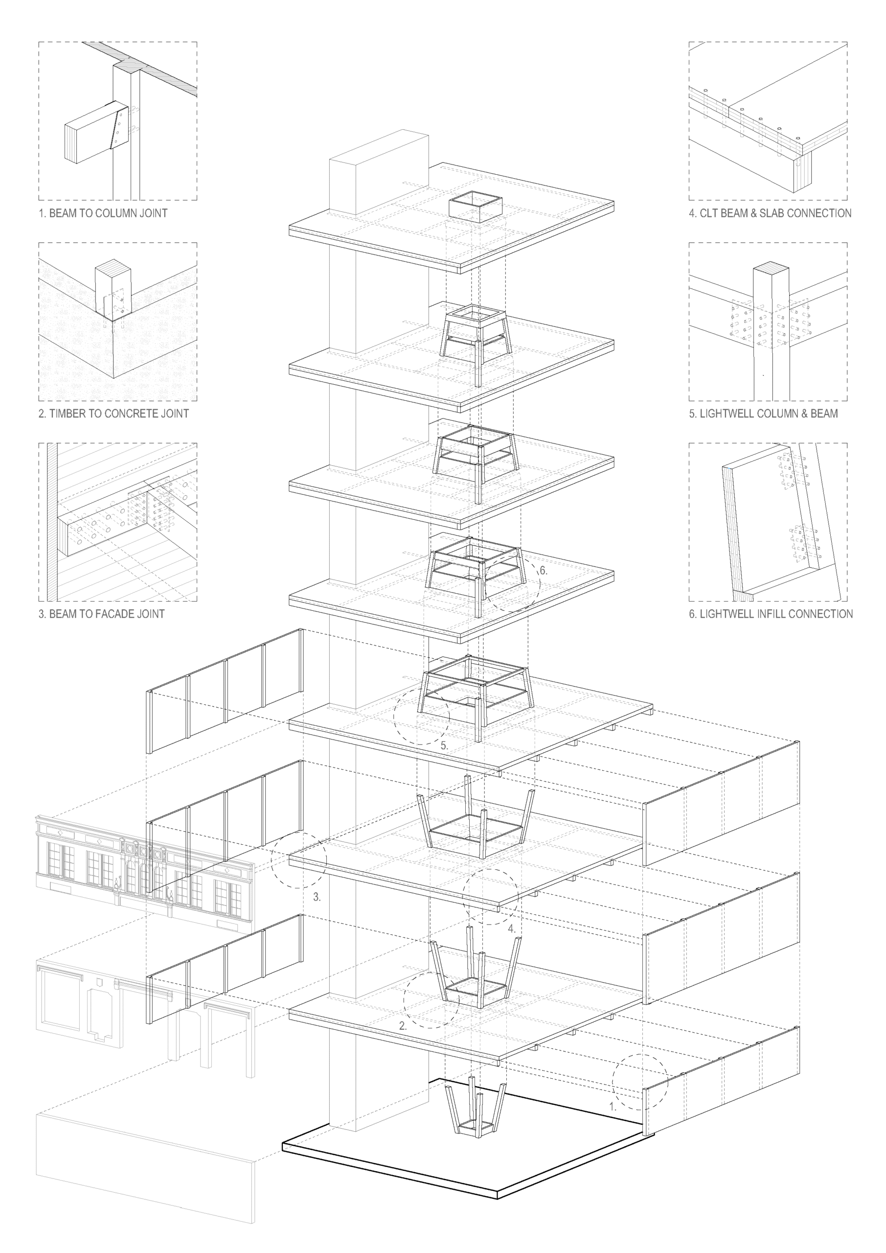 By layering preservation with new construction, the project bridges past and future: retaining the historic character of the garage while embedding new forms of urban life and production. The adaptive reuse strategy not only safeguards the architectural identity of the original structure but also demonstrates how sustainable materials and contemporary design approaches can generate social, cultural, and economic value. Ultimately, the project positions itself as both a neighborhood anchor and a model for how cities can repurpose aging infrastructure to address 21st-century challenges.