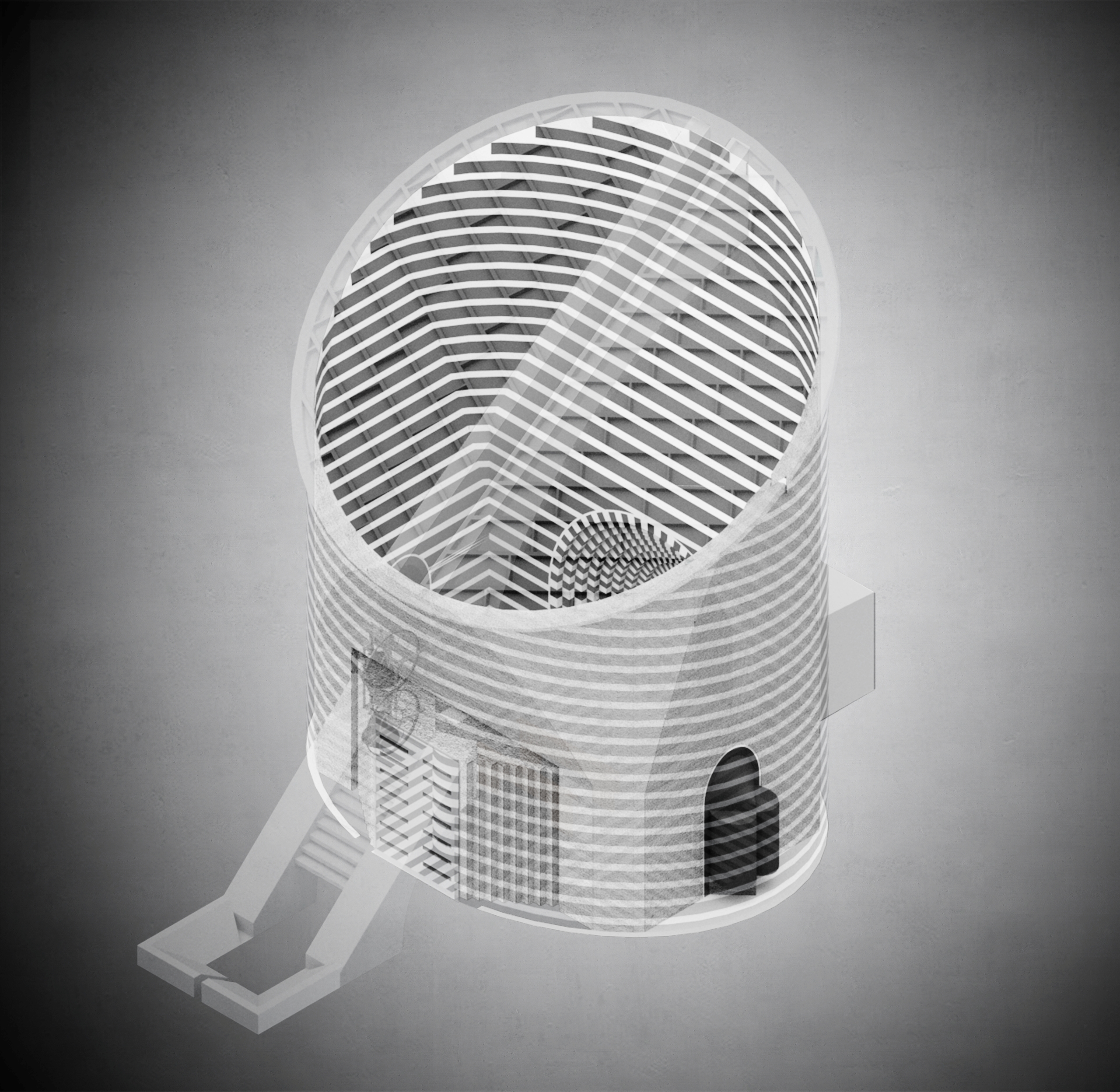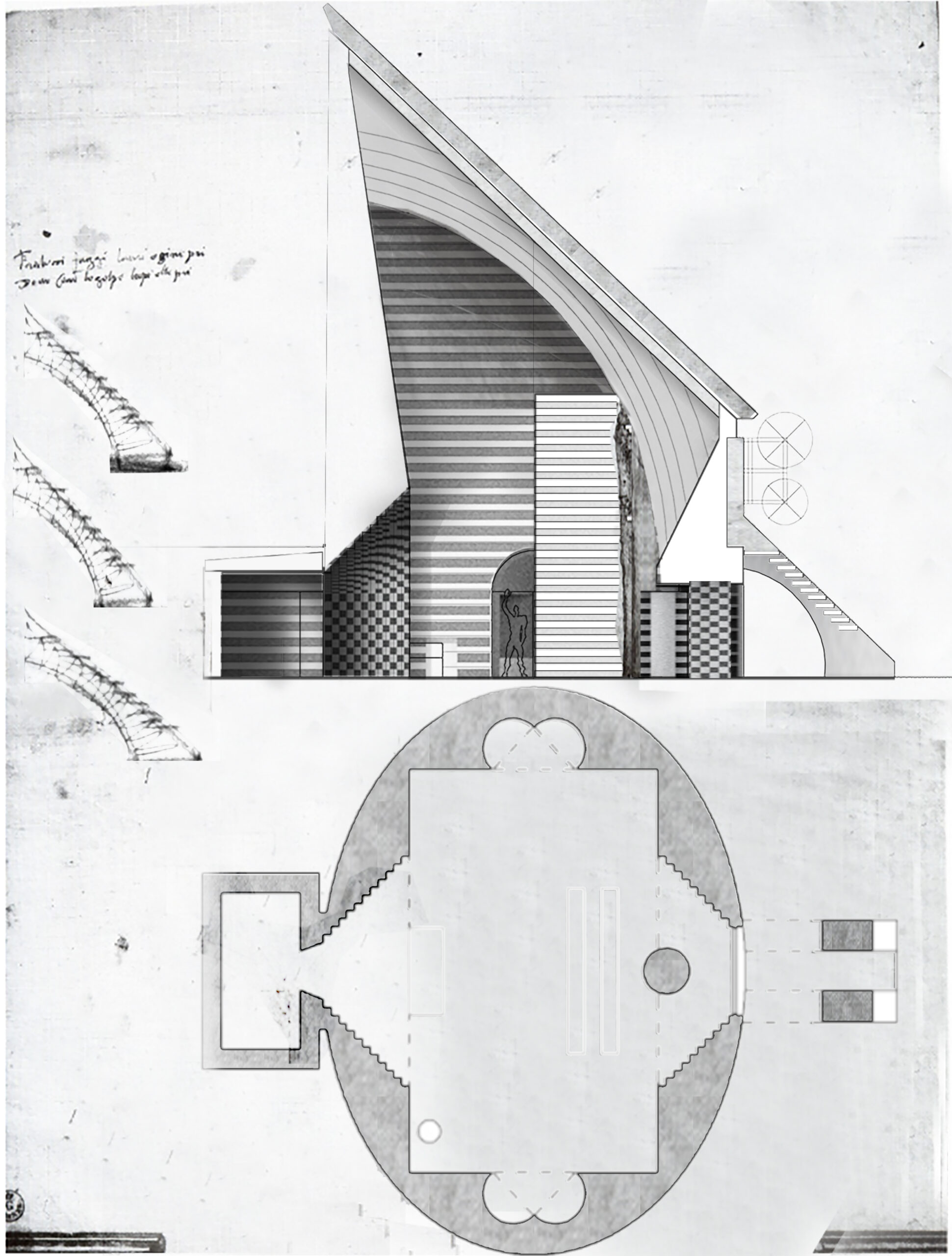 This project investigates the evolving role of the architectural section through the lens of Mario Botta’s Church of San Giovanni Battista in Mogno. The study situates the section within a historical continuum, from its origins in pre-perspectival practices to its reinvention through modern technologies such as X-ray imaging and beyond into the speculative possibilities of micro- and nano-scale visualization.