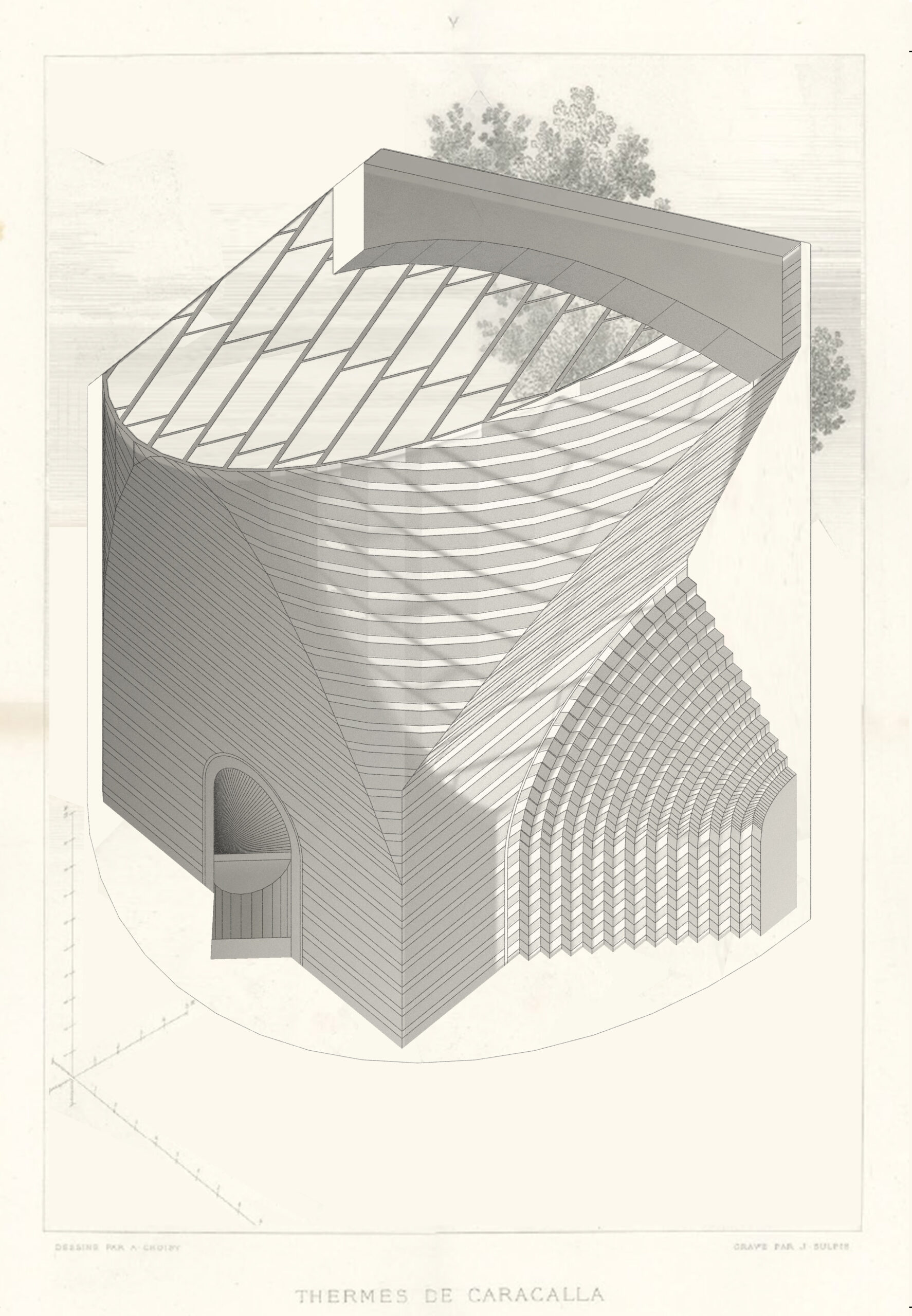 The church, with its precise geometry and material articulation, offers an ideal case for examining how sections reveal both structural clarity and spatial experience. By re-drawing the church in the representational styles of different eras, the project reenacts the evolution of the section: from early orthographic projections and unrolled surfaces, to axonometric constructions, to technologically mediated modes of “seeing through” such as radiography. Each method uncovers new layers of meaning and highlights the section’s ability to mediate between interior and exterior, light and mass, surface and depth.