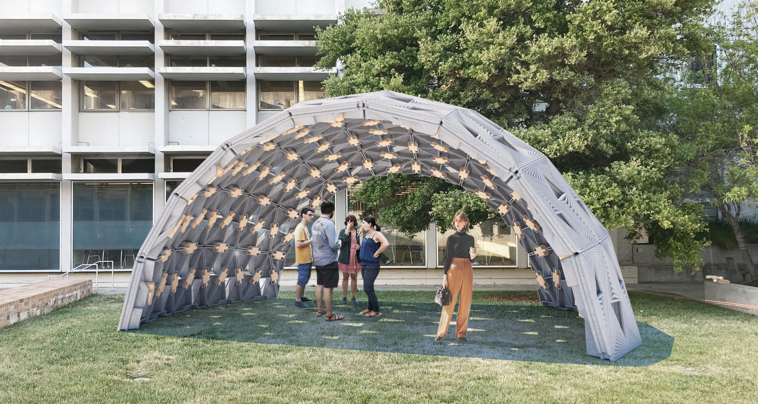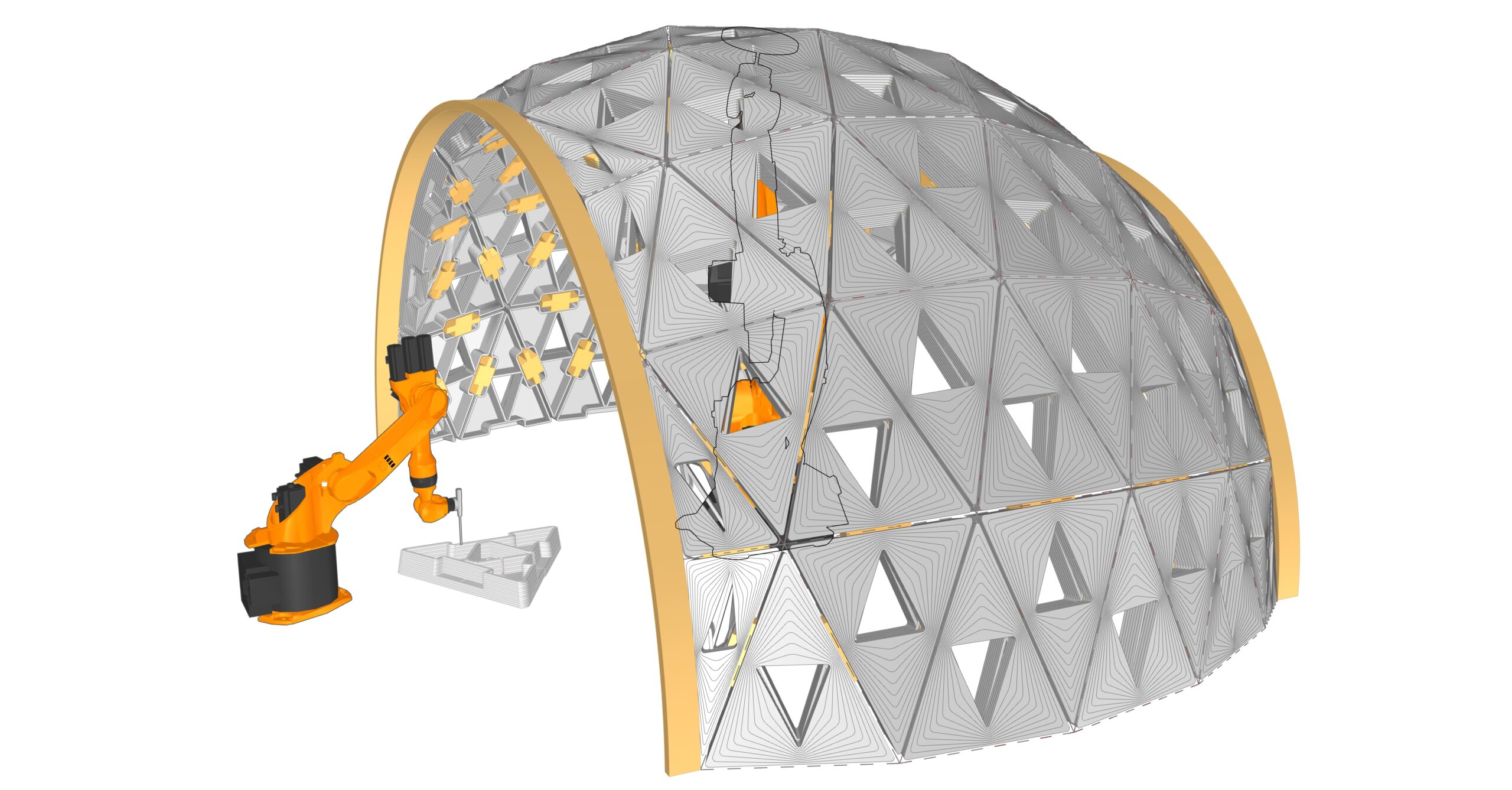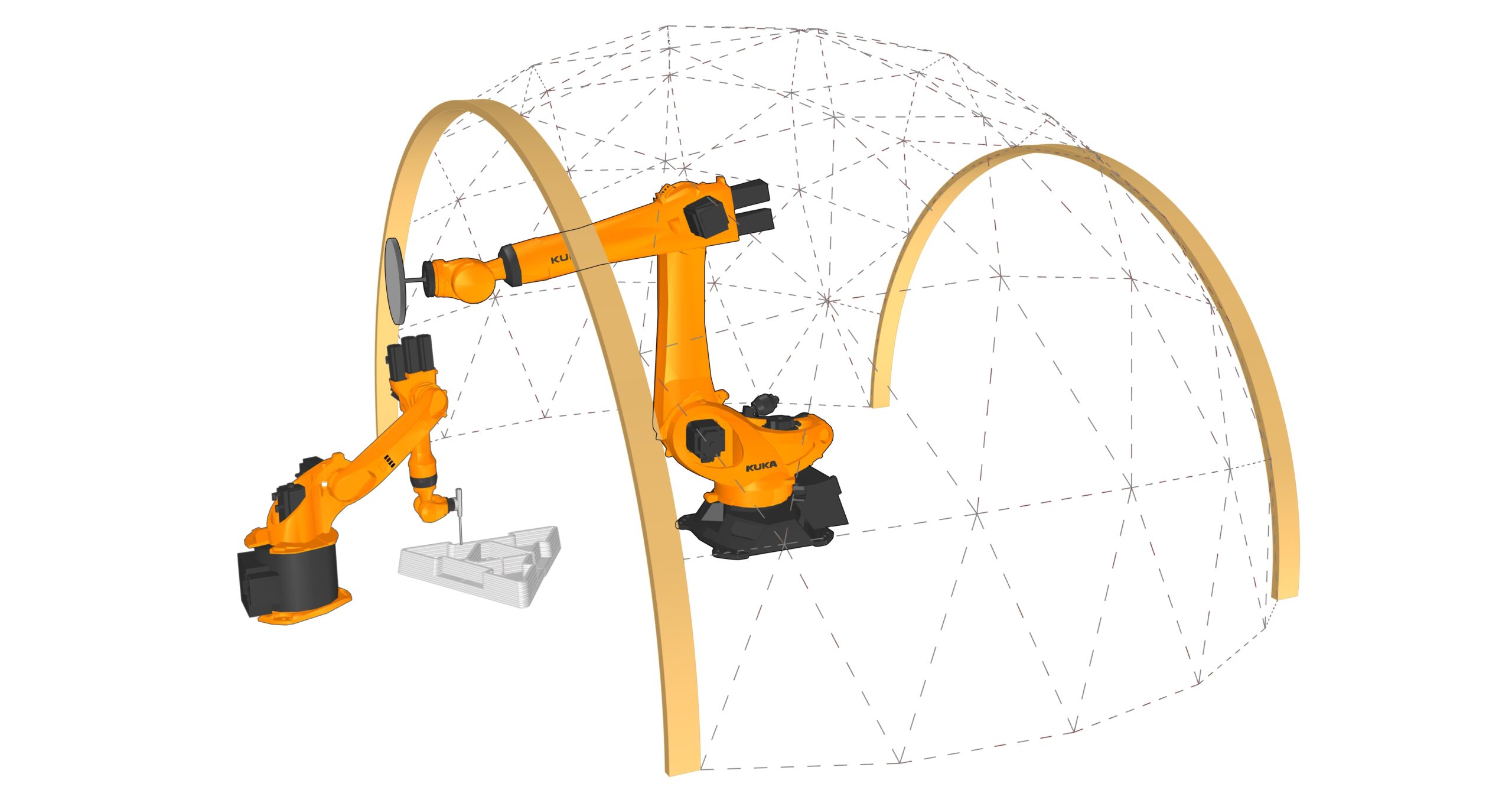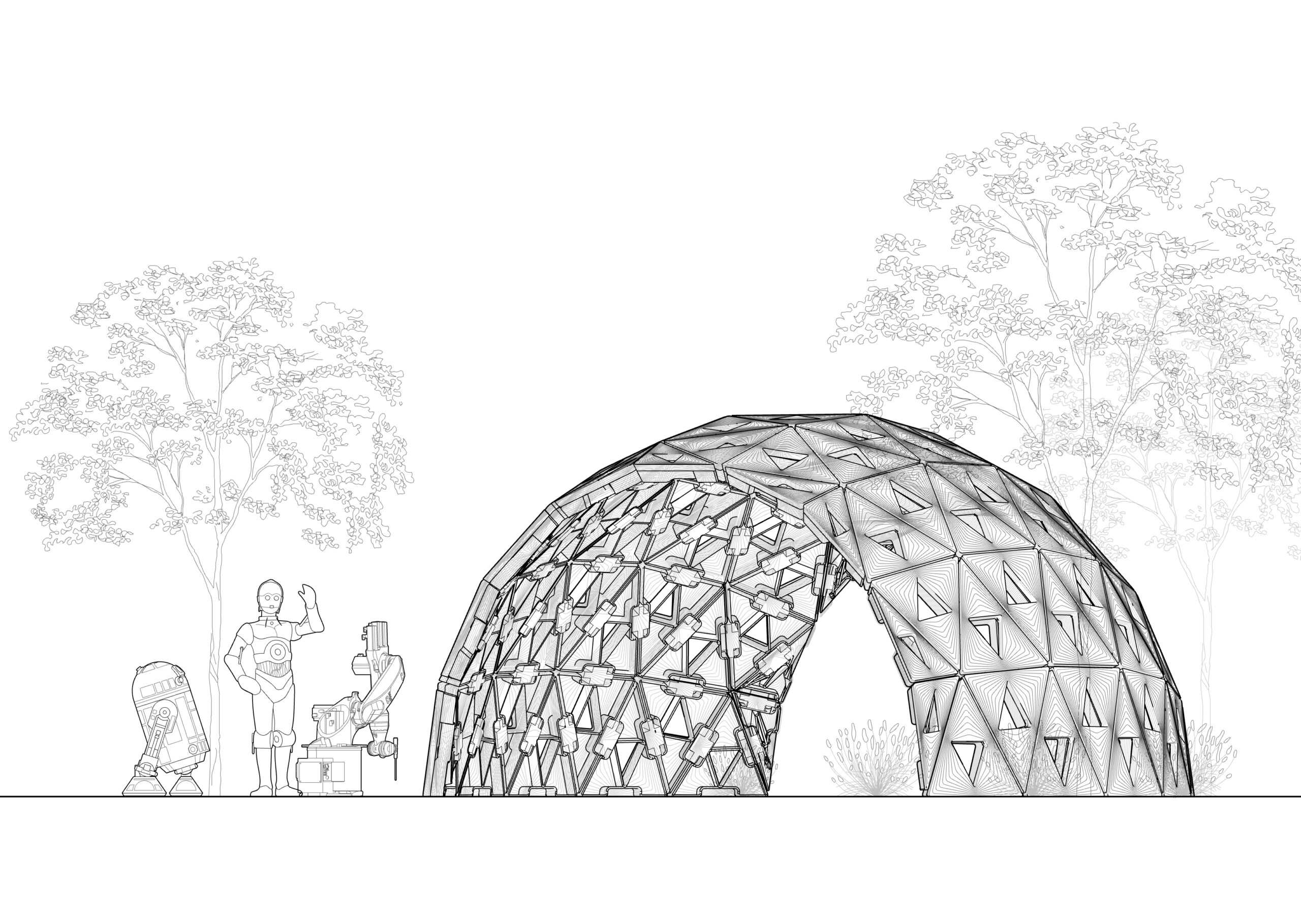 The pavilion serves as a testbed for studying robotic collaboration, modular precision, and adaptive assembly strategies. By decoupling the processes of printing and placement, the system demonstrates a method for parallelizing construction tasks, reducing inefficiencies, and allowing for greater flexibility in form generation. The study also examines how material behavior, unit geometry, and robotic path planning interact to influence structural stability and design outcomes.